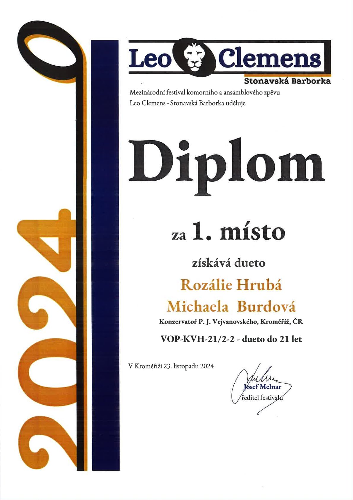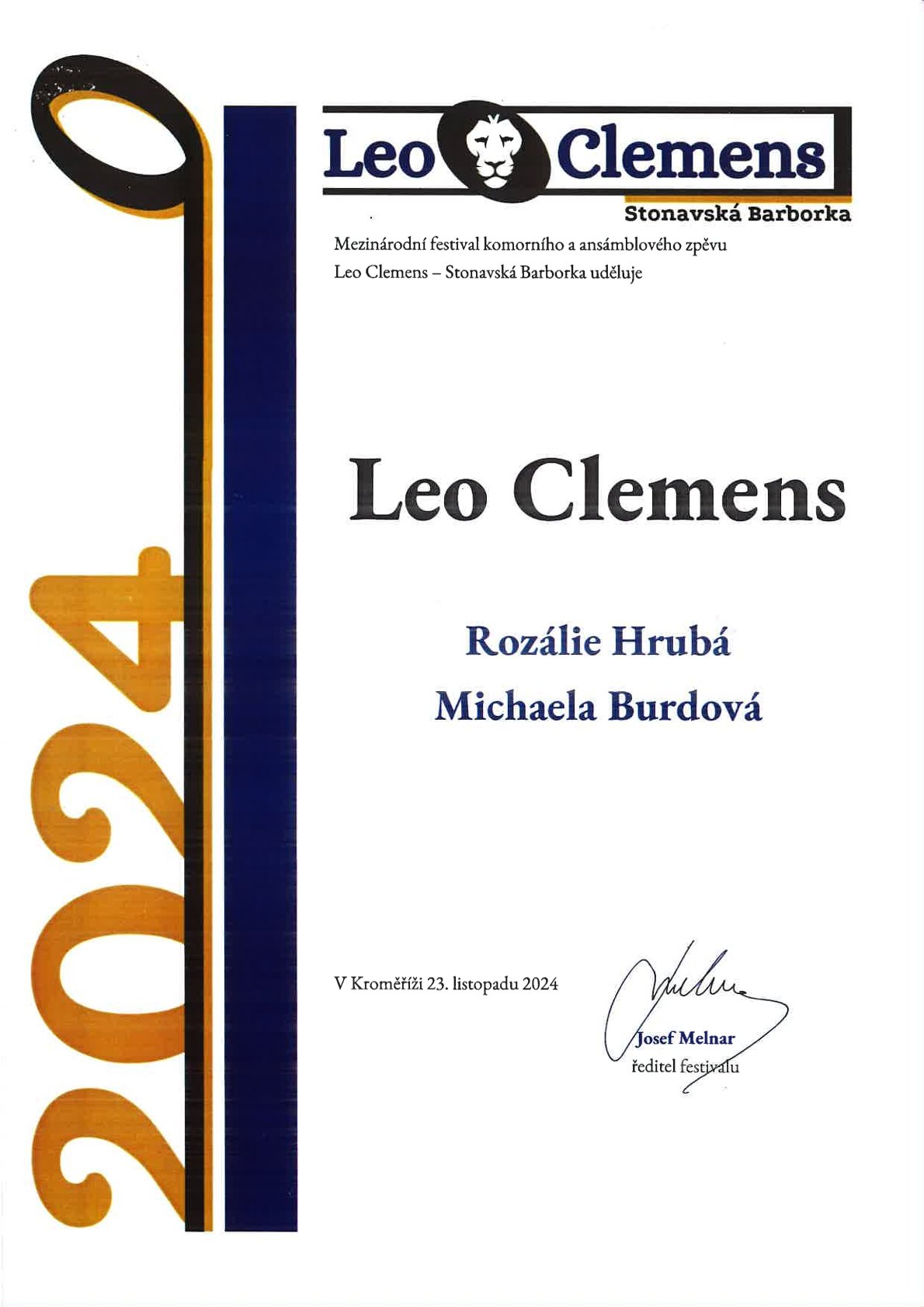 O víkendu se konal 18. ročník Interpretační soutěž Leo Clemens. Dueto Rozálie Hrubá a Michaela Burdová získalo úžasné 1. místo a zároveň získalo diplom Absolutního vítěze. Gratulujeme!!!