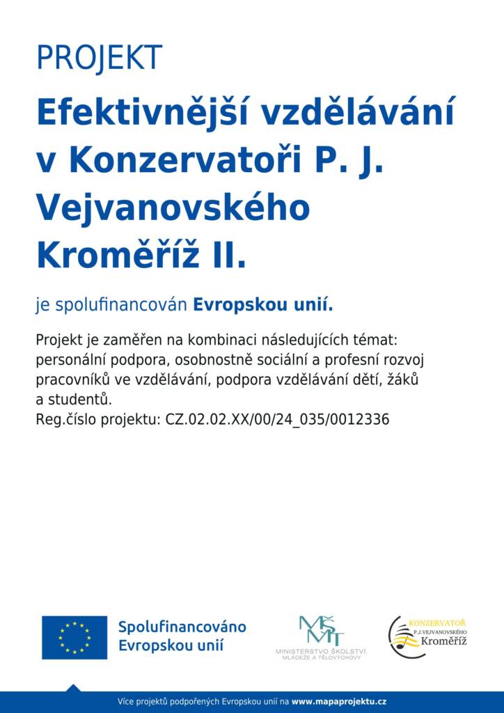 Projekt „Efektivnější vzdělávání v Konzervatoři P. J. Vejvanovského Kroměříž II.“ je financován z Operačního programu Jan Amos Komenský.